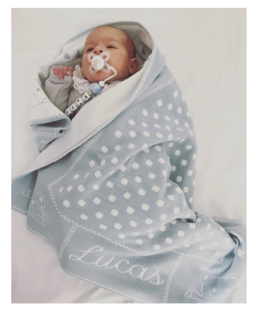 Mantita Topos - Fondo Celeste Empolvado / Topos Marfil(Personalizada)-Pangasa