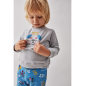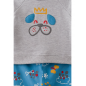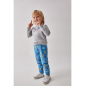Conjunto de dos piezas para recién nacido niño de 1 a 24 meses. La sudadera gris presenta un adorable aplique de perrito en el centro, añadiendo un toque de ternura al conjunto. Confeccionada con un tejido suave y cálido, la sudadera incluye un cuello redondo y ajuste en los puños. El pantalón a juego en color azul está decorado con estampados de huellas y nubes, y cuenta con una cintura elástica para un ajuste cómodo y seguro. Este conjunto es perfecto para cualquier ocasión, manteniendo a tu bebé abrigado y con estilo.