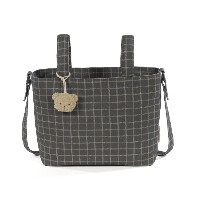El bolso organizador o crossbody Tartan en cuadro gris de Pasito a pasito elaborado en resistente algodón con un tratamiento waterproof para silla de paseo es un modelo muy ligero además de ser resistente y espacioso para que puedas llevar todo lo que podrías necesitar durante el paseo de tu bebé. Aparte de la gran capacidad que tiene, está distribuido para facilitarte la organización, con varios bolsillos que te ayudarán a colocar todos tus complementos ordenados y así puedes ubicarlos más fácil cuando vayas a usarlos. Incorpora un bolsillo interior térmico para botellas o biberones. Viene acondicionado con doble asa, una larga para colgar en el hombro y unas cortas para colgarla al cochecito. Incluye cambiador. Su diseño lo hacen perfecto para usar a diario y combinar con tus looks. Está fabricado con materiales de gran calidad, libres de colorantes azoicos, ftalatos y sustancias nocivas para la salud. Los productos para bebé de Pasito a Pasito cuentan con un diseño muy diferente a todas las demás. Sus colecciones se caracterizan por el trabajo al detallada, pensadas siempre desde un punto de vista práctico. Utilizan materiales de primera calidad para remarcar la elegancia y la armonía en cada una de sus piezas. Nuestros modelos son exclusivos y de estilo inconfundible, pensados para madres actuales que gozan de buen gusto y que aprecian los detalles tanto como nosotros. Especificaciones: Materiales: 100% algodón con tratamiento waterproof. Medidas: 25X33X14 cm.