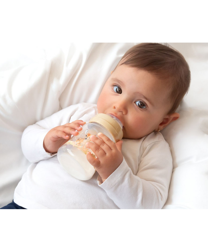 Todos los biberones Kiokids son de boca ancha, para ofrecer mayor superficie de apoyo para los labios del bebé, así como facilidad en el llenado o la limpieza, y por supuesto están libres de BPA.