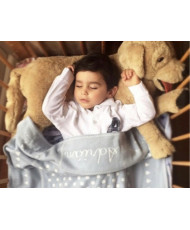 Mantita Topos - Fondo Celeste Empolvado / Topos Marfil(Personalizada)-Pangasa