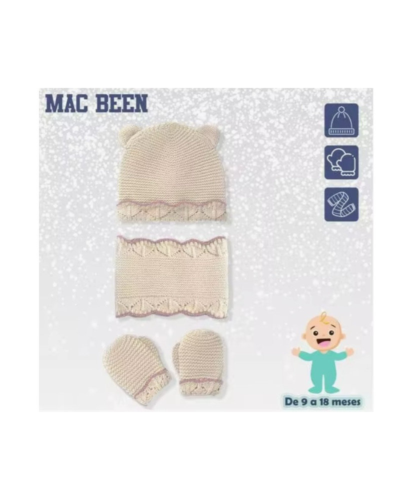 Conjunto Gorro, Bufanda y Manoplas Beig/Rosa-Mac Been