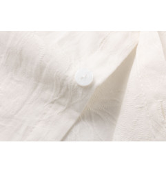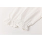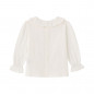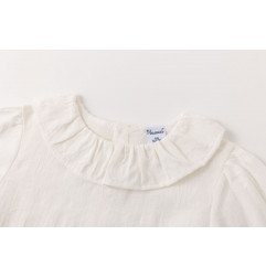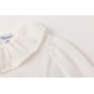 Blusa en tejido popelín con textura de flores, con volante en cuello. Manga con goma interior en puño.