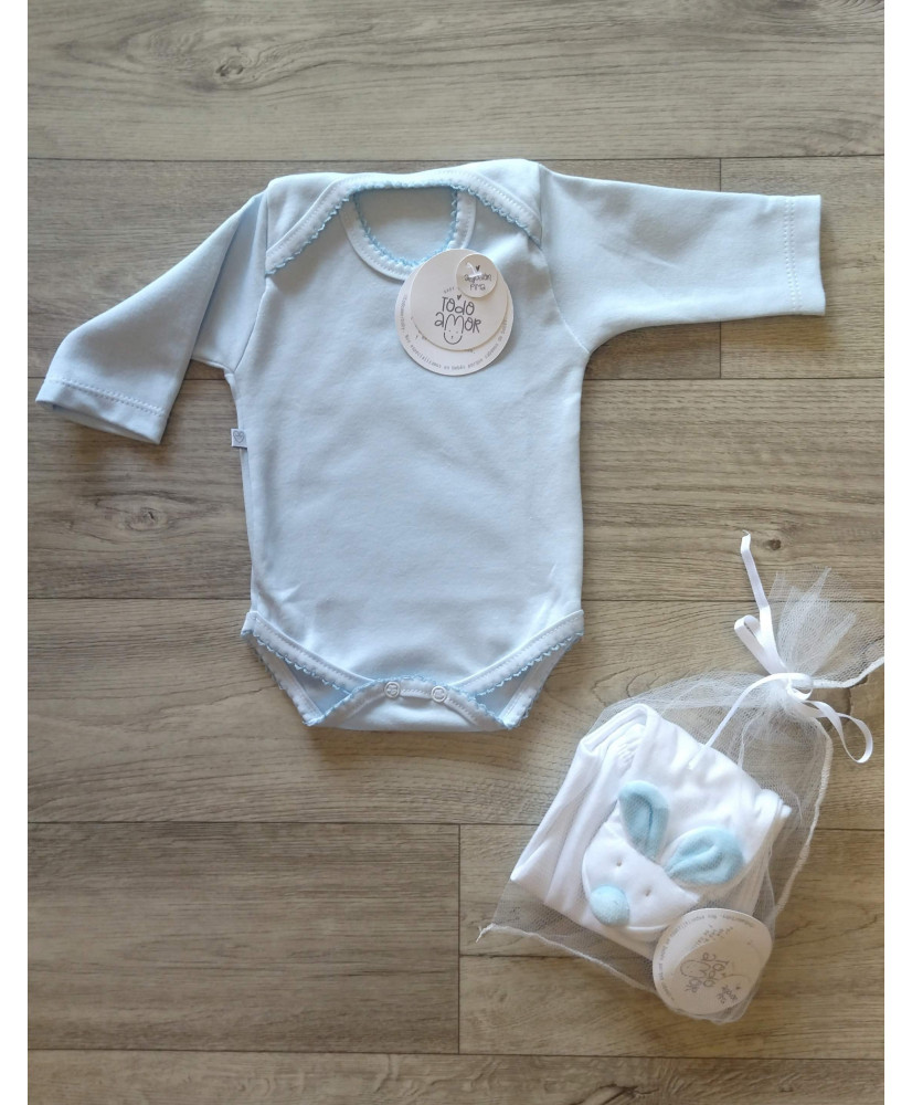 Conjunto Bodie y Polaina Conejito Celeste-Todo Amor Baby