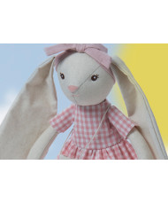 Simpatico peluche en forma de conejitos con su ropita y grandes orejotas ideal para regalo y para incluir en cestas de recien nacido.