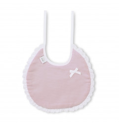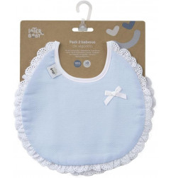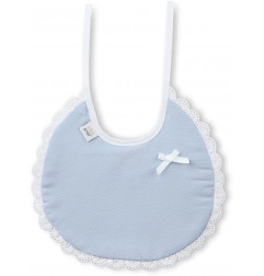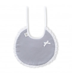 El diseño del babero es perfecto para cuando llevas al peque más arreglado, tiene un lacito blanco y una elegante puntilla rodea todo el babero.