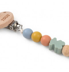 Chupetero Tous Baby con cuentas y osos de suave Silicona y madera de Haya. Diseñado con una combinación de suaves colores; se convertirá en el complemento indispensable durante todos los paseos, quedando la pinza sujeta a la ropa del bebé para evitar la pérdida del chupete. .No tóxico e inodoro. .Cuentas y oso de silicona grado alimentario libre de BPA, PVC, Fatales, Cadmio de plomo. .Cuentas de madera de Haya sin tintes y barnices. .Cordón de Nylon resistente a los hongos. .Clip/broche de metal. .Limpieza con ayuda de un paño. .No compatible con el lavavajillas. .No compatible con el esterilizador. .Recomendamos no usar el chupetero cuando els bebé está en la cuna o en la cama. Color: Único.
