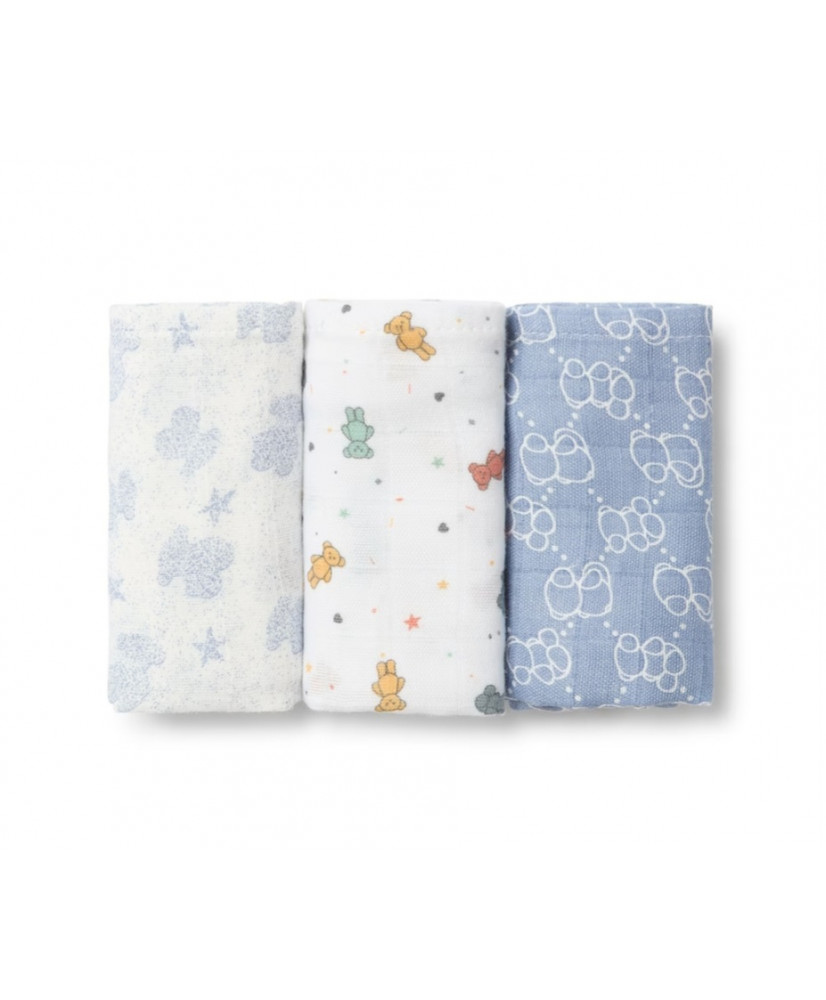 Suave tejido fino transpirable anti alergénica multi estampadas. Ideal para el cuidado del bebé y para diversos usos. Composición: 53%Algodón 47%Viscosa. Medidas: 38x38cm. Color: Azul. Certificado OEKO/TEX*. Fabricado en la UE.