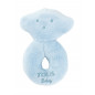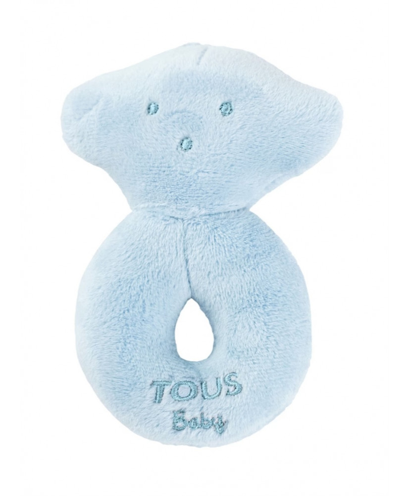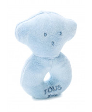 Oso Sonajero Baby TOUS de suave y cálido tejido tundosado con ojos y nariz bordados garantizando la seguridad del bebé. COMPOSICIÓN: 100% Poliéster de color Azul Celeste. MED: 9x13cm.
