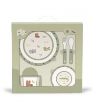 El set de Vailla de cinco piezas Savana se compone de un plato llano, uno hondo, tenedor, cuchara y un vaso de entrenamiento con boca ergonómica antigoteo desmontable. Dieñado con unos divertidos dibujos de animales, es apto para bebés de más de seis meses. Puede calentarse en el microondas y lavarse en el lavavajillas.