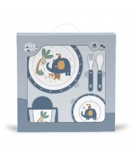El set de Vailla de cinco piezas Savana se compone de un plato llano, uno hondo, tenedor, cuchara y un vaso de entrenamiento con boca ergonómica antigoteo desmontable. Dieñado con unos divertidos dibujos de animales, es apto para bebés de más de seis meses. Puede calentarse en el microondas y lavarse en el lavavajillas.