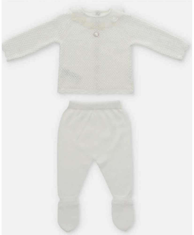 Conjunto Punto Volante Tul Bordado Marfil Crudo-Martín Aranda