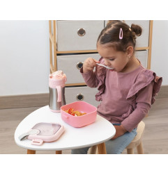 Caja almuerzo rosa con cuchara gris-Kiokids