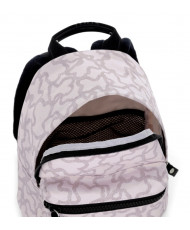 Cierre con cremallera a contraste. Tirantes ajustables y asa superior logotipados a contraste. Bolsillo interior de rejilla. Compartimento exterior con cremallera con aplique oso Tous a tono. COMPOSICIÓN: 100% Poliéster Forro: 100% Poliéster. Color rosa. MED.: 27x22x12cm.