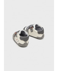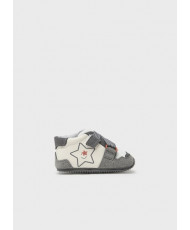 Zapatillas deportivas para recién nacido, de gran versatilidad para sus aventuras diarias. Forro interior y plantilla de algodón transpirable. Cómoda suela de goma extra flexible y antideslizante para un mayor confort del pie. Cierre combinado de velcro y cinta elástica que garantiza una perfecta sujeción. Este artículo se presenta en una caja de la línea Newborn ideal para regalar en ocasiones especiales.